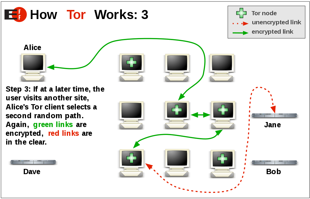 - Nodos de Salida (Exit Nodes): Finalmente, el tráfico sale de la red Tor a través de un nodo de salida.